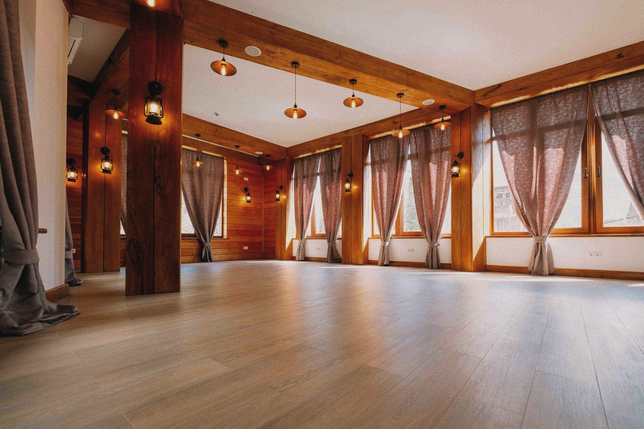 — Проживание в двухместном номере класса комфорт с видом на горы — Завтраки и ужины в ресторане отеля — Посещение бани "Маджи" — Полная программа практики йоги утром и вечером